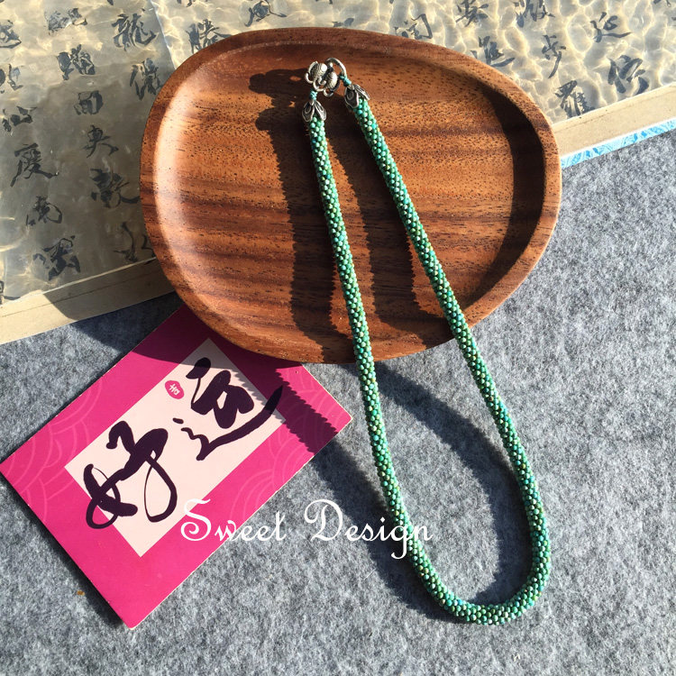 Sweet手作 设计款绿松石小米珠编织项链 S925银配饰 高瓷蓝绿调调