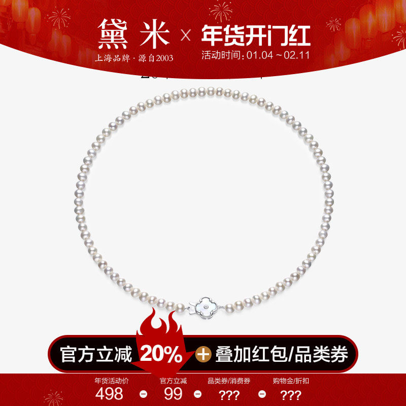 黛米珠宝 佳人 5-6mm近圆强光淡水珍珠项链 S925银四叶草扣锁骨链