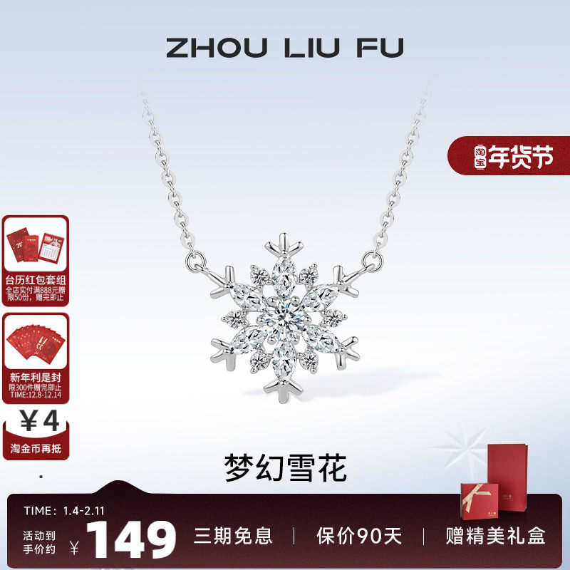 周六福S925纯银梦幻雪花项链吊坠设计感唯美锁骨链送女友生日礼物