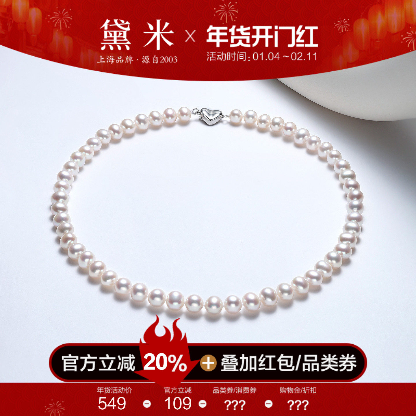 黛米珠宝 爱似海 7.3-8.3mm近圆无核淡水珍珠项链 S925银锁骨链女