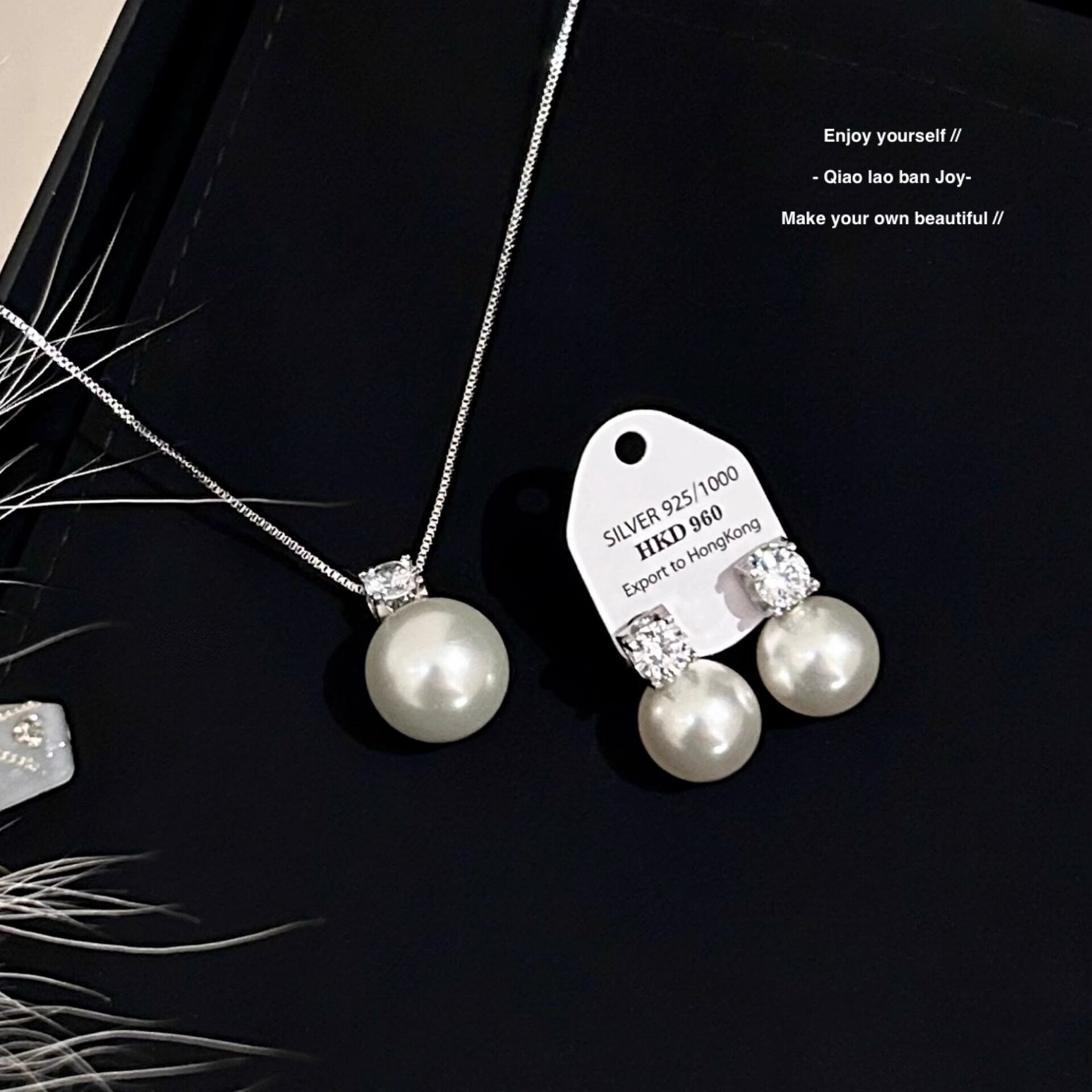 s925银珍珠项链耳环套装高级感轻奢小众气质锁骨链2025新款颈链女
