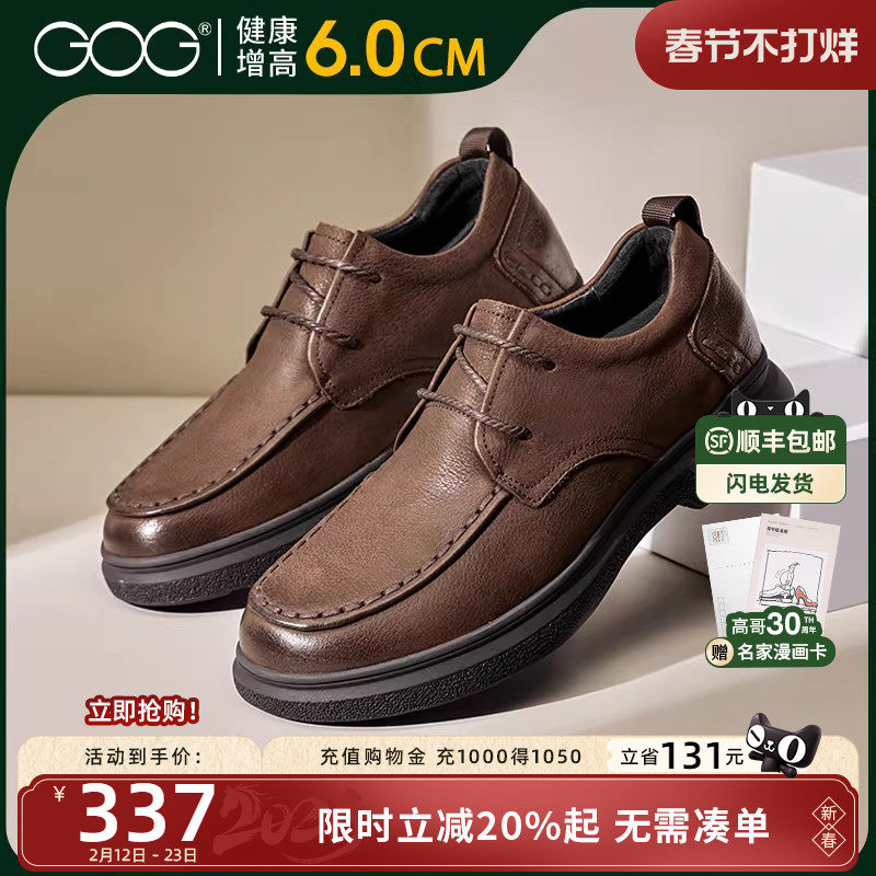 厚底皮鞋男款大头2026春季新款透气爆款真皮德比鞋增高商务休闲鞋