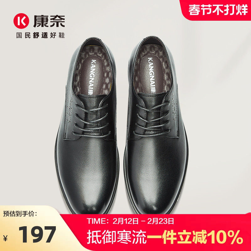 康奈男鞋英伦风男真皮休闲皮鞋青年百搭软皮商务办公室轻质正装鞋