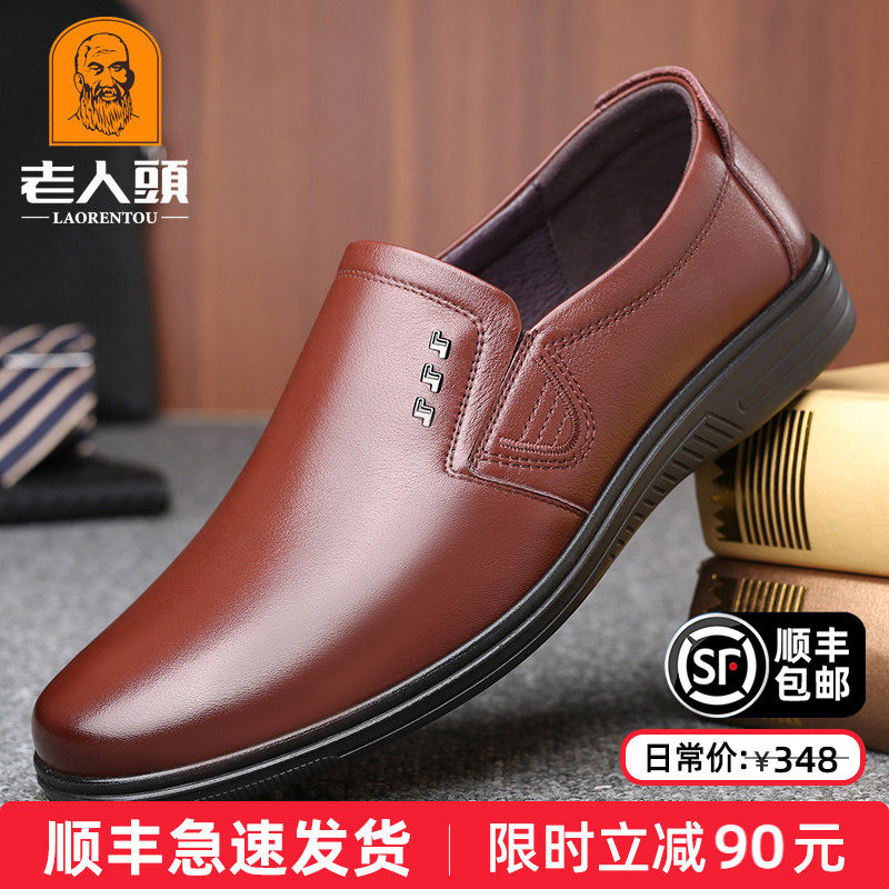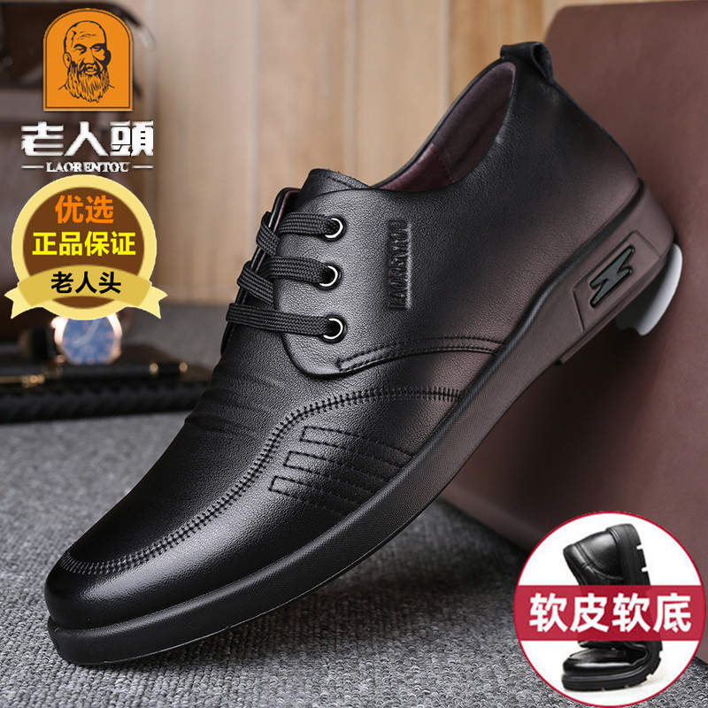老人头休闲男鞋真皮冬季新款商务皮鞋男透气软皮韩版系带青年皮鞋