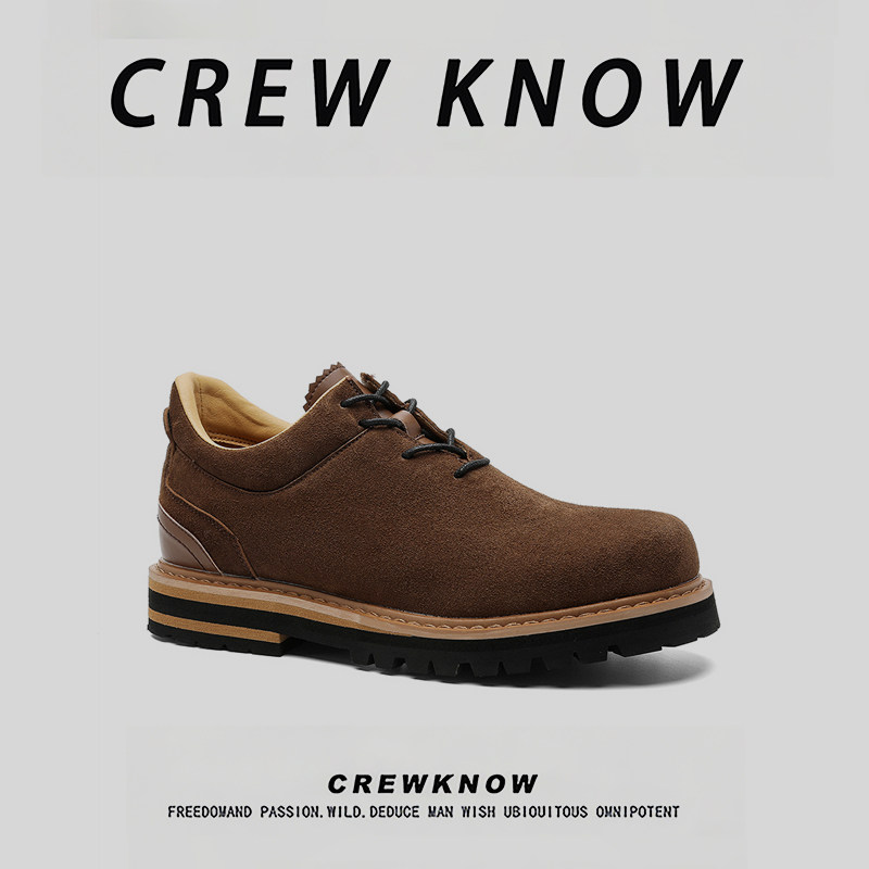 【法国CREW KNOW男鞋】青年商务休闲鞋橡胶发泡透气平底棕色车缝