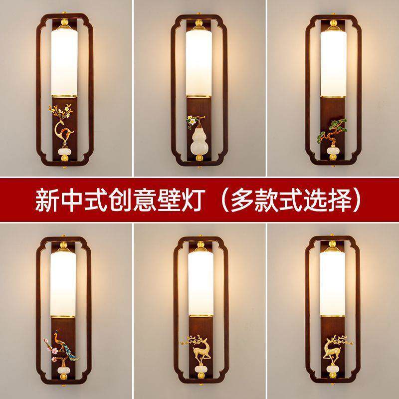 2025新款全铜实木新中式客厅电视背景墙壁灯卧室床头楼梯LED墙灯