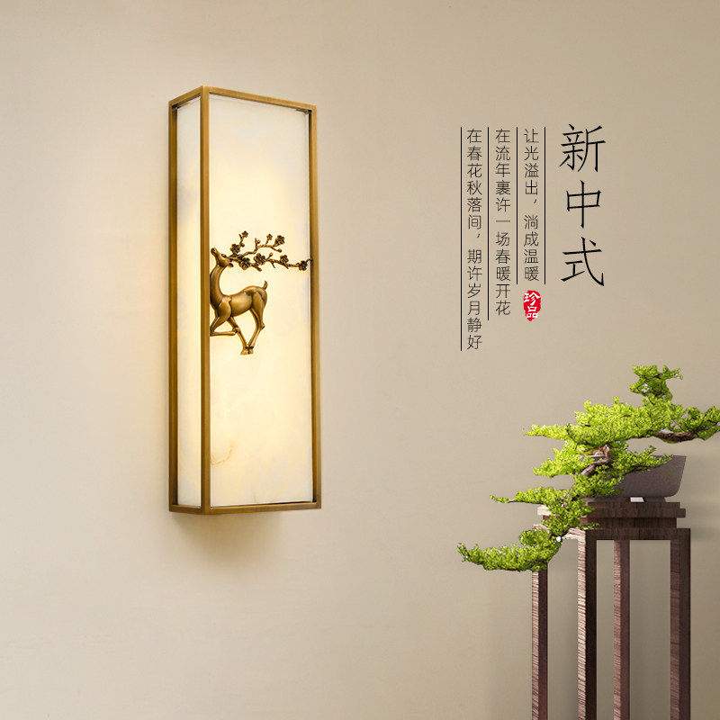 2025禅意新款全铜实木新中式客厅电视背景墙壁灯卧室床头LED墙灯