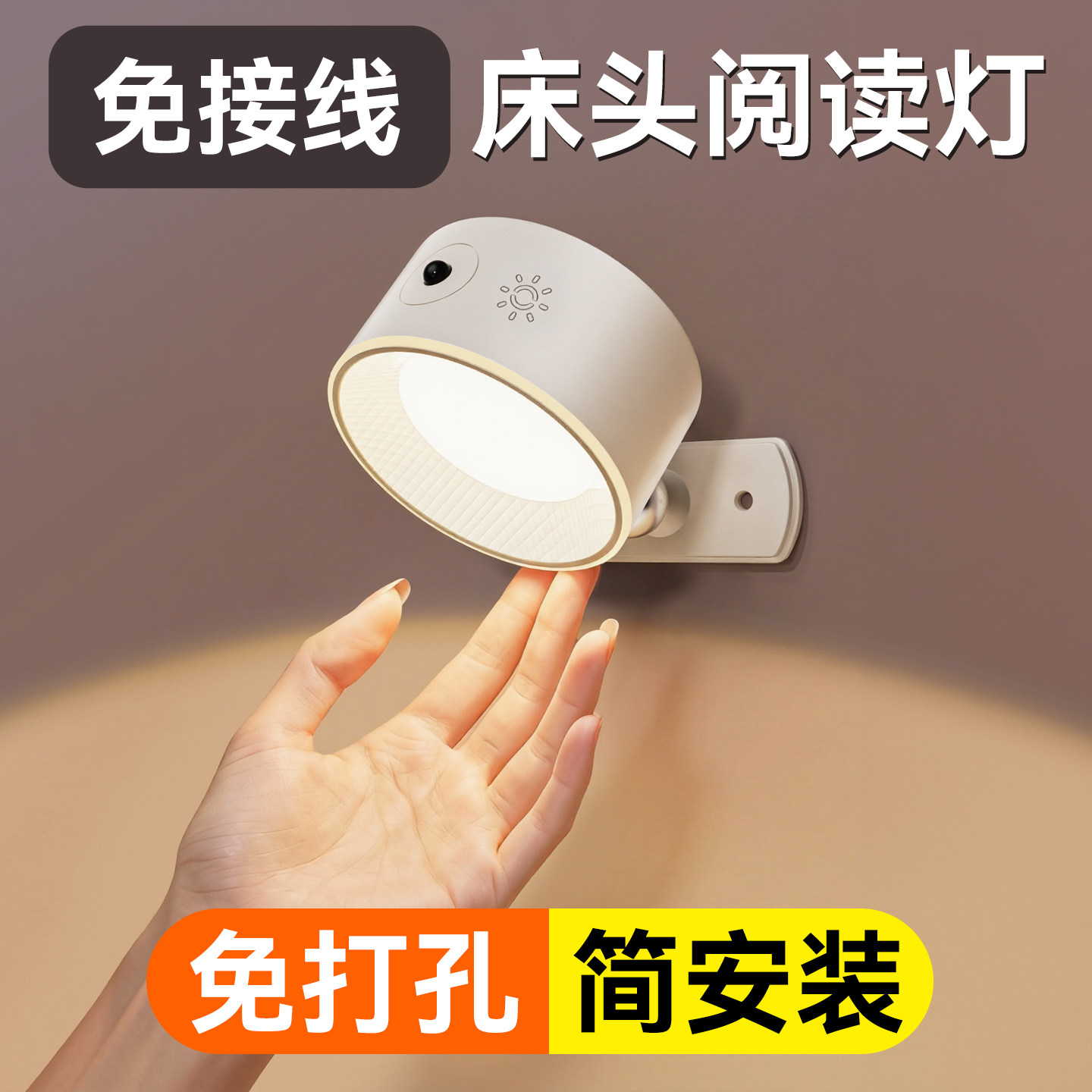 免布线充电壁灯无线磁吸射灯小夜灯免打孔卧室床头阅读灯洗墙壁灯