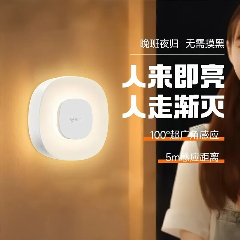 公牛墙壁灯卧室床头灯护眼起夜婴儿喂奶壁挂充电免打孔睡眠小夜灯