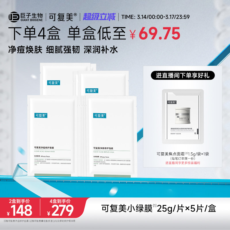 可复美净痘小绿膜修护皮肤屏障保湿控油润肤净痘强韧面膜5片/盒