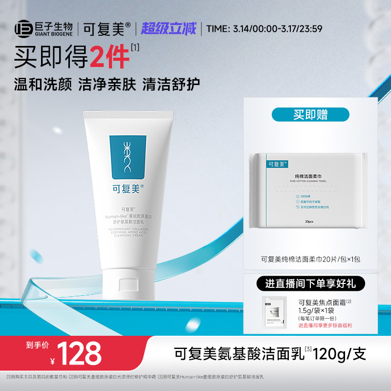 可复美重组胶原蛋白氨基酸温和清洁保湿洗面奶男女士洁面乳120g