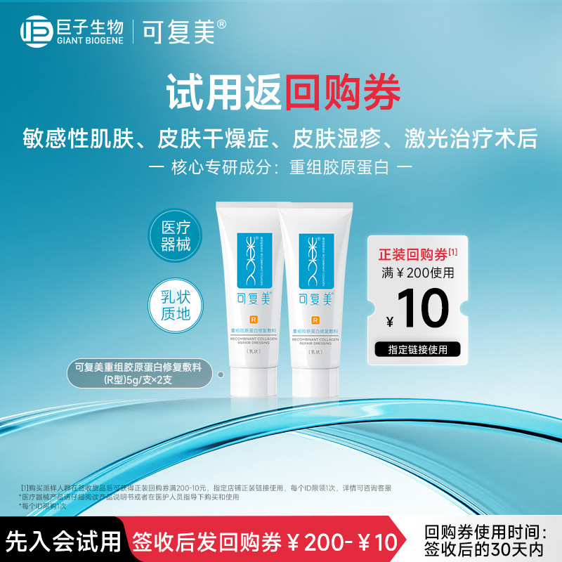 可复美重组胶原蛋白修复敷料修护乳液状5g*2支-试用【U先通投1】