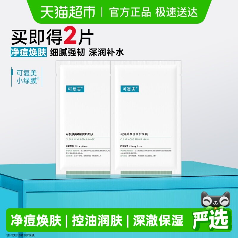 【试用】可复美净痘小绿膜修护皮肤屏障保湿控油面膜25g*3片t