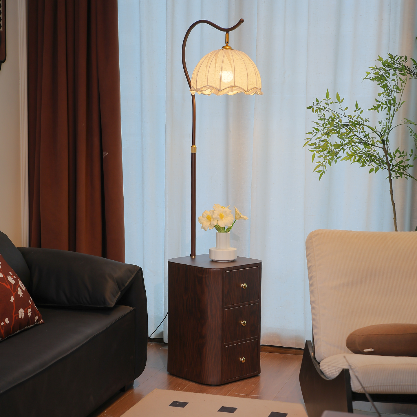 立式落地灯客厅沙发旁边高级感落地灯置物架一体中古风卧室床头柜