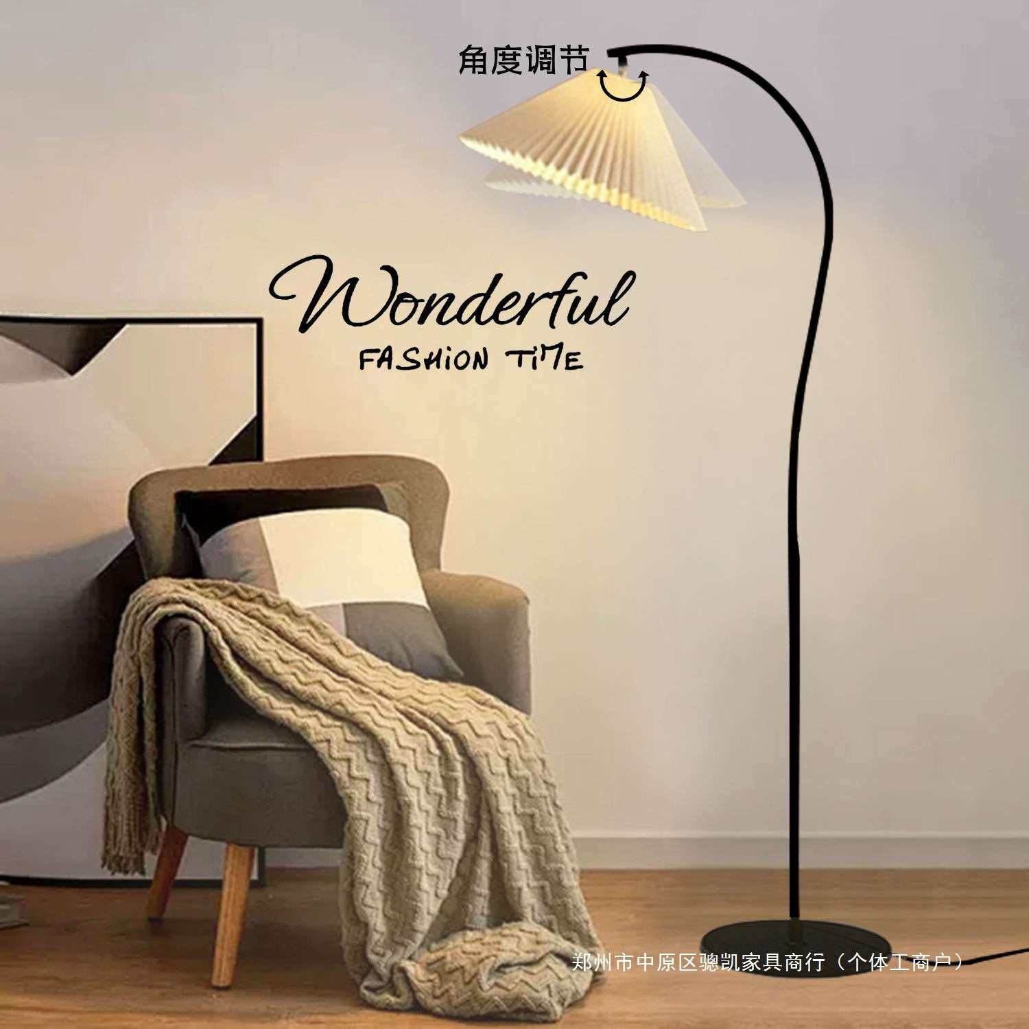 百褶立式落地灯客厅ins风高颜值家居卧室灯护眼极简日系台灯复古