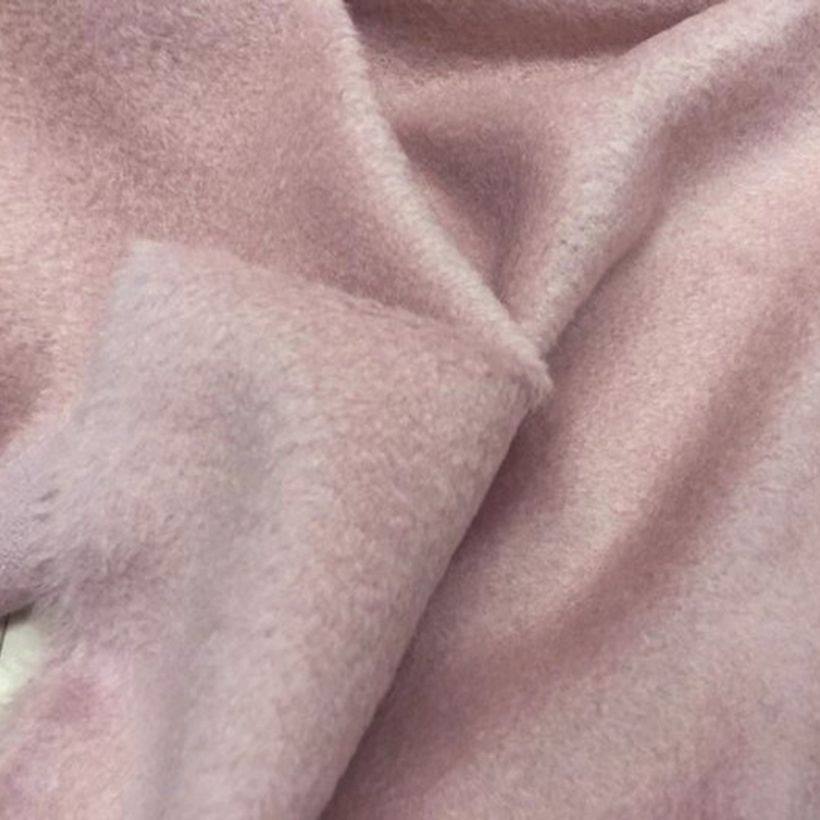 全羊毛面料 秋冬大衣外套披肩 嫩粉红色单面蓬松感长毛色织布料