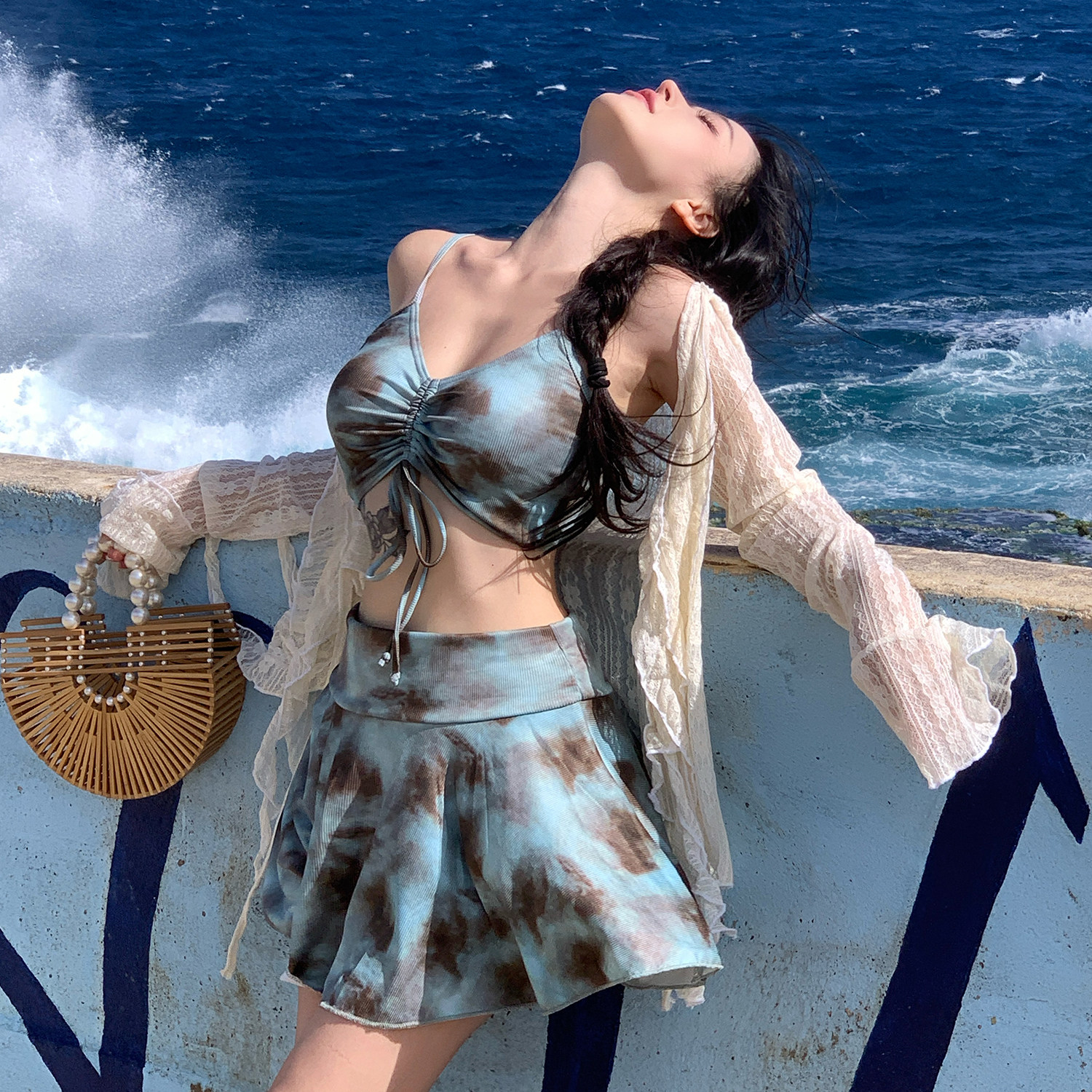 大码比基尼三件套泡温泉分体高级感微胖女孩遮肉度假绝美游泳衣女