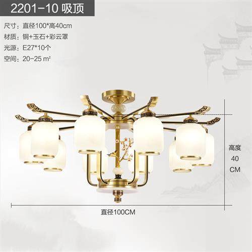 新中式客厅吊灯2025年新款主卧室灯全铜玉石别墅餐厅中国风吊灯