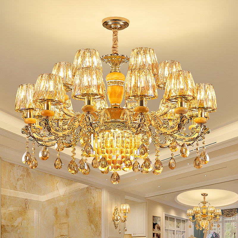 客厅吊灯2024年新款欧式奢华玉石别墅餐厅主卧室水晶家用大厅灯具
