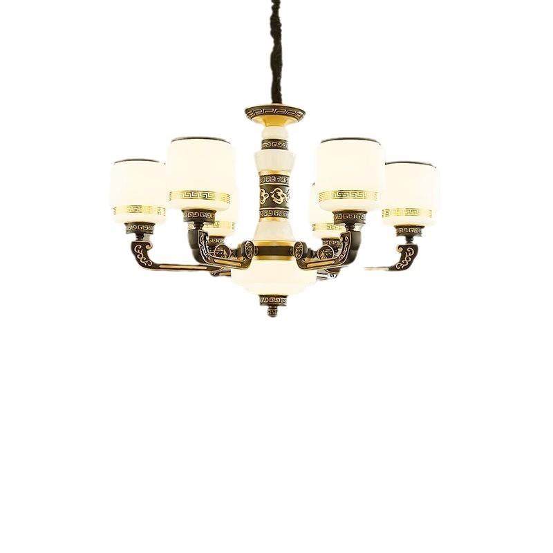 新中式客厅吊灯全铜玉石灯天然白玉灯具别墅复式楼中楼大气奢华灯