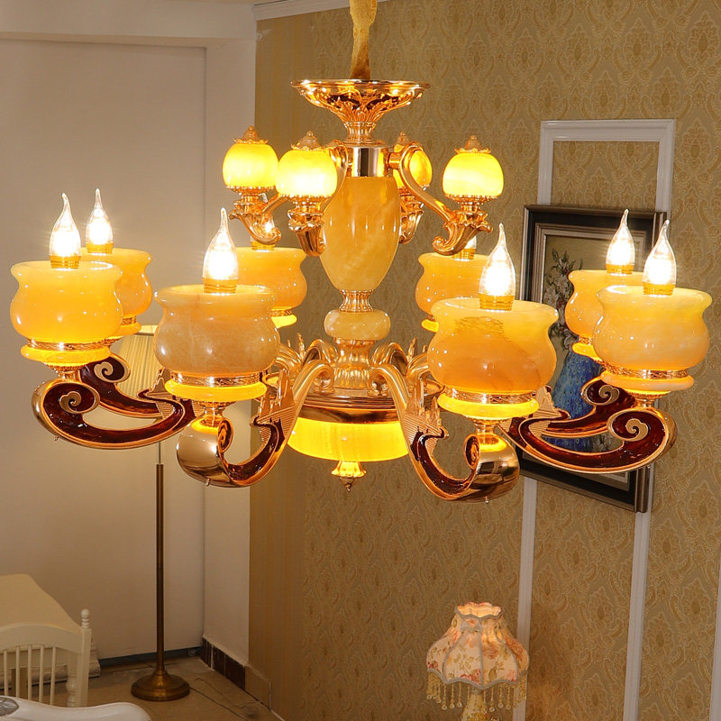 新款欧式吊灯美式 锌合金真玉石金古铜色客厅LED灯饰创意家居灯具