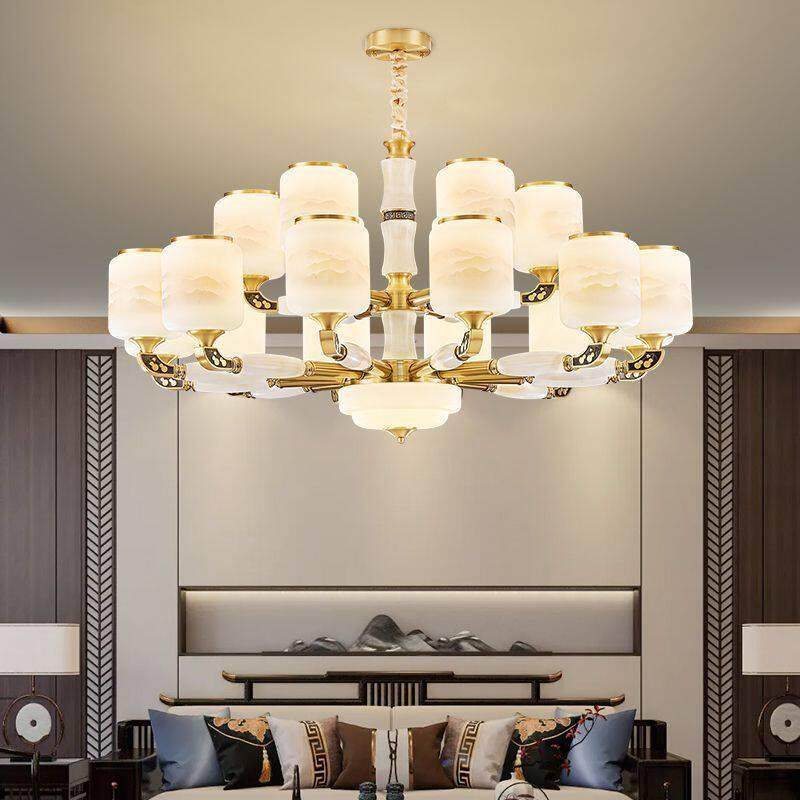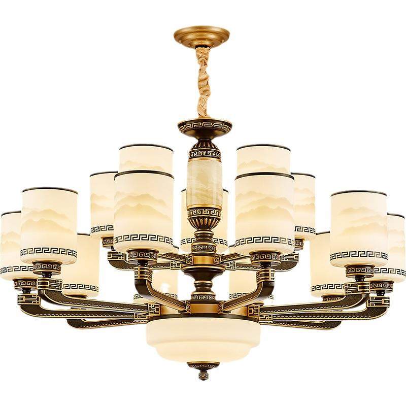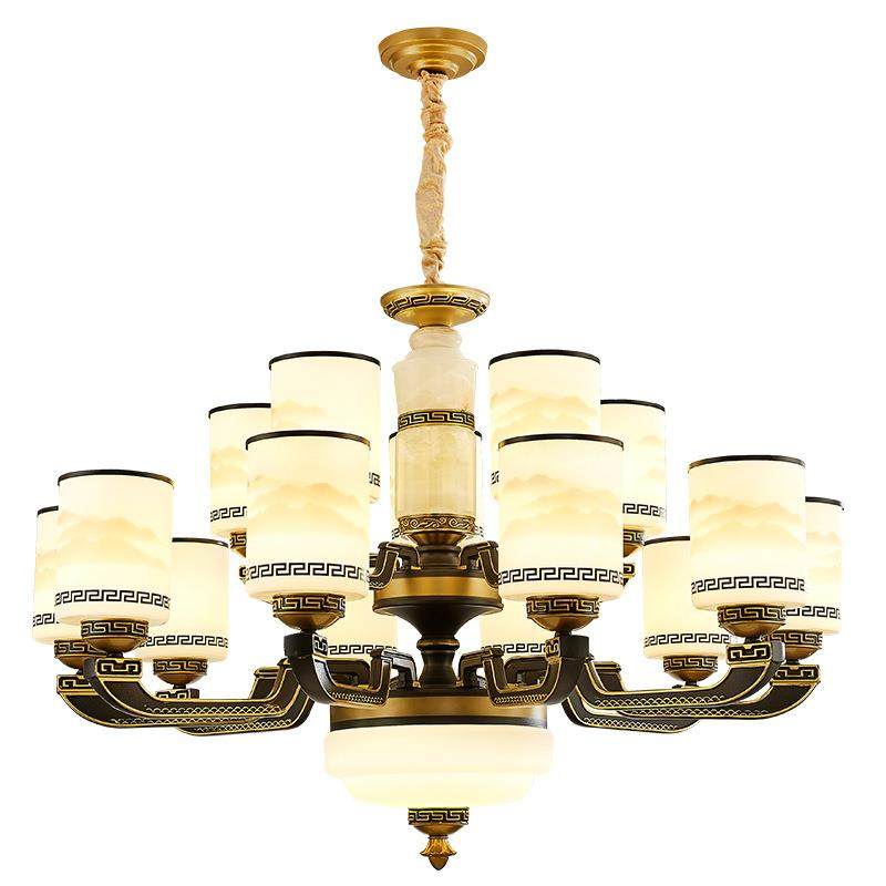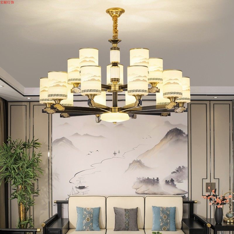 客厅吊灯新中式高端铜+玉石灯饰大餐桌吊灯厂家直销复式楼大吊灯