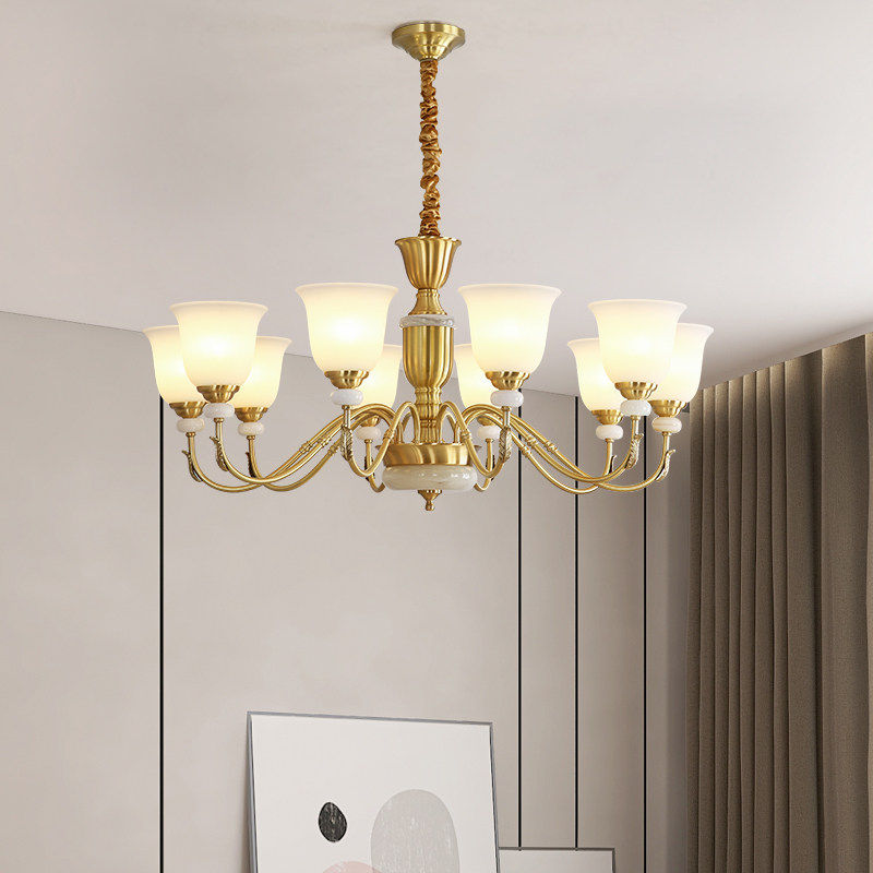 美式全铜吊灯客厅灯现代简约大气复古玉石卧室餐厅高档轻奢风灯具