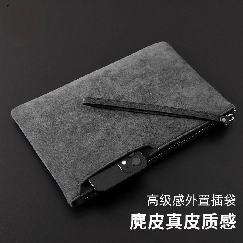 2025新款男士手拿包轻奢轻便麂皮真皮质感简约高级斜跨钱包小包