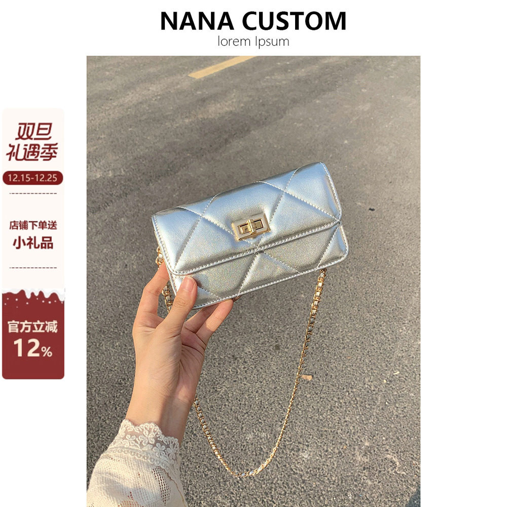 头层鱼子酱牛皮小众设计饭盒包真皮小香风菱格链条包百搭斜跨小包