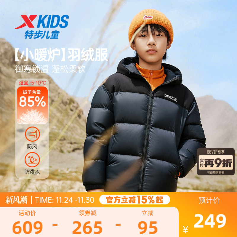 特步童装儿童羽绒服男童加厚冬装2025年秋冬款大童保暖外套防寒服