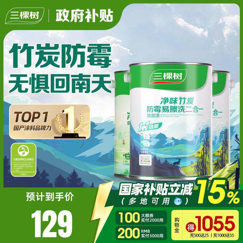 三棵树乳胶漆室内自刷家用防霉抗甲醛刷墙漆油漆墙面漆涂料内墙漆