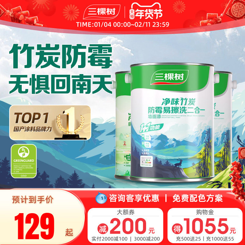 三棵树美净丽净味二合一内墙乳胶漆家用防霉彩色室内自刷墙面涂料