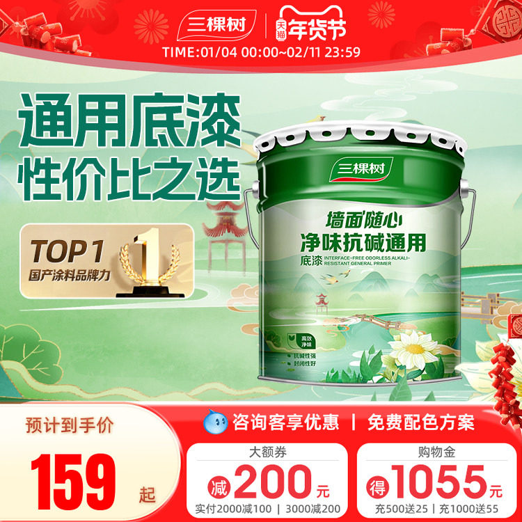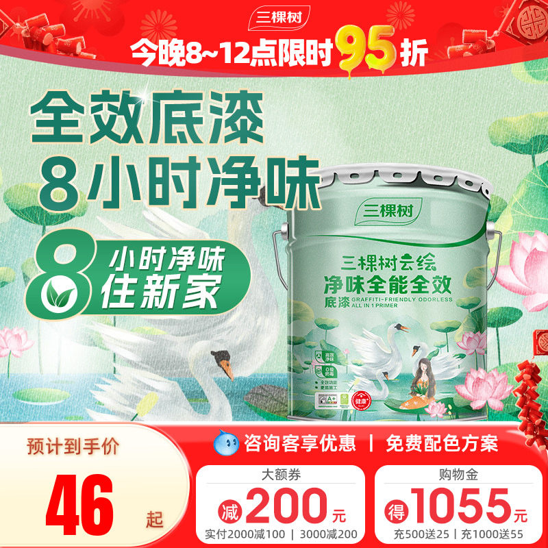 三棵树内墙乳胶漆墙面随心净味抗碱通用底漆家用环保室内专用油漆