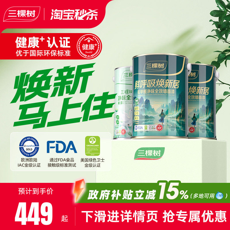 三棵树鲜呼吸乳胶漆抗甲醛抗污全效室内家用墙面漆油漆涂料刷墙漆