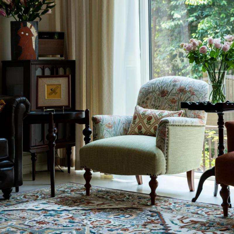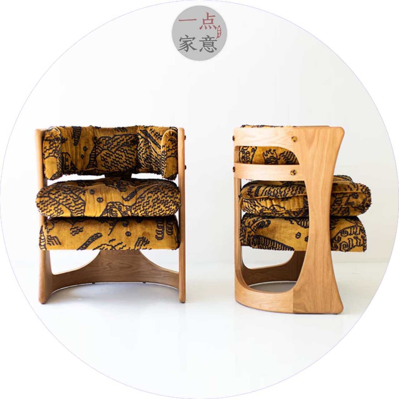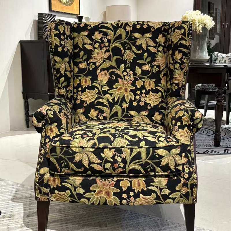 老钱风单人沙发椅中古设计师老虎椅美式提花布艺椅子外贸家具厂家