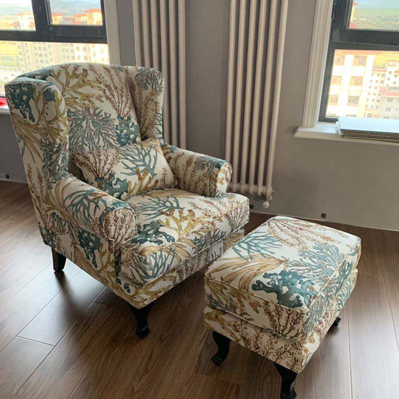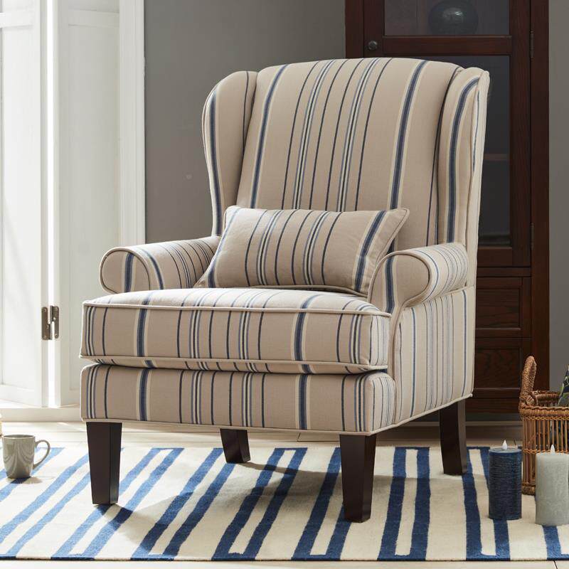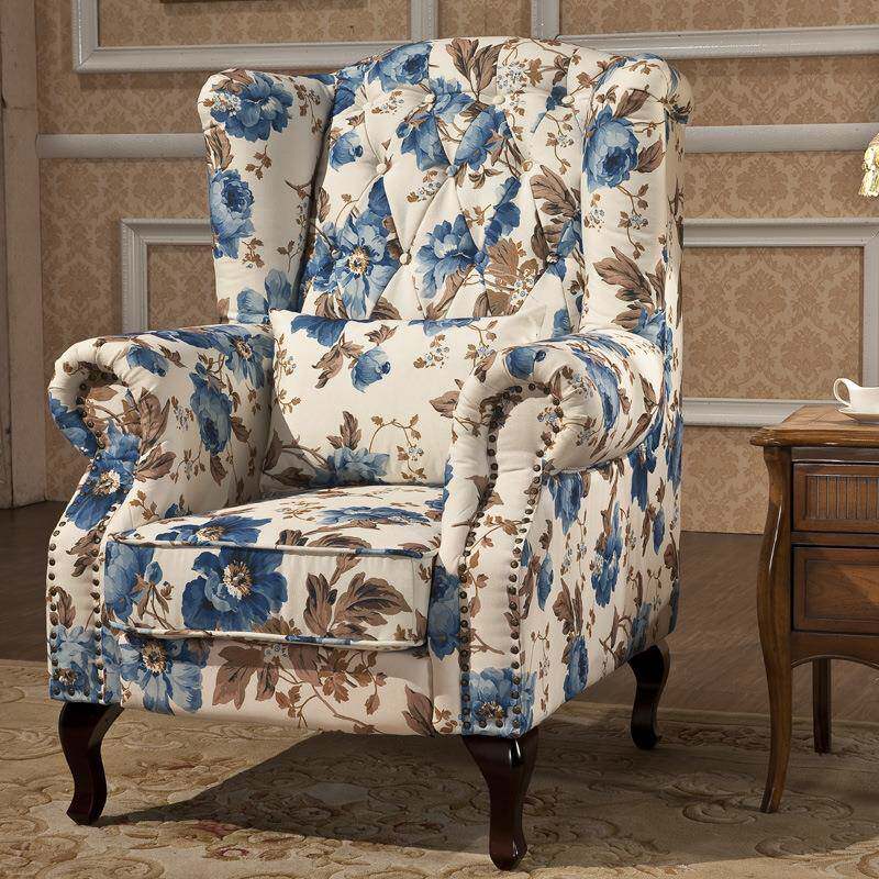 老虎椅美式田园单人沙发布艺复古客厅阳台单人椅休闲椅高背椅卧室
