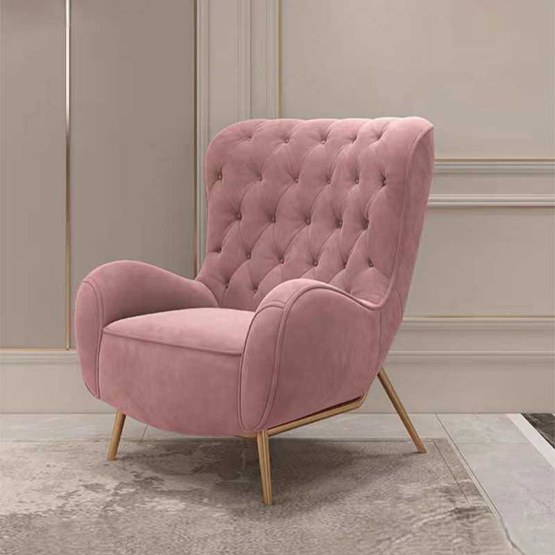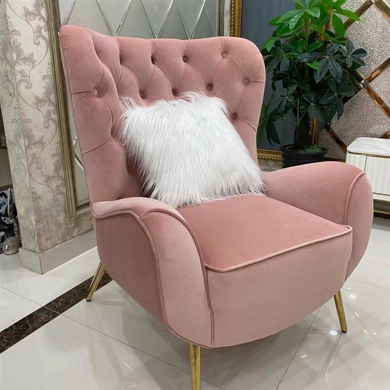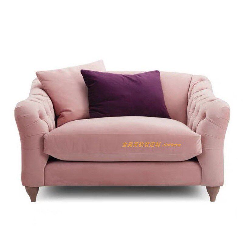 速发比利时实木纽扣轻艺复人老虎椅美式单古布奢藕粉色别墅玫红色
