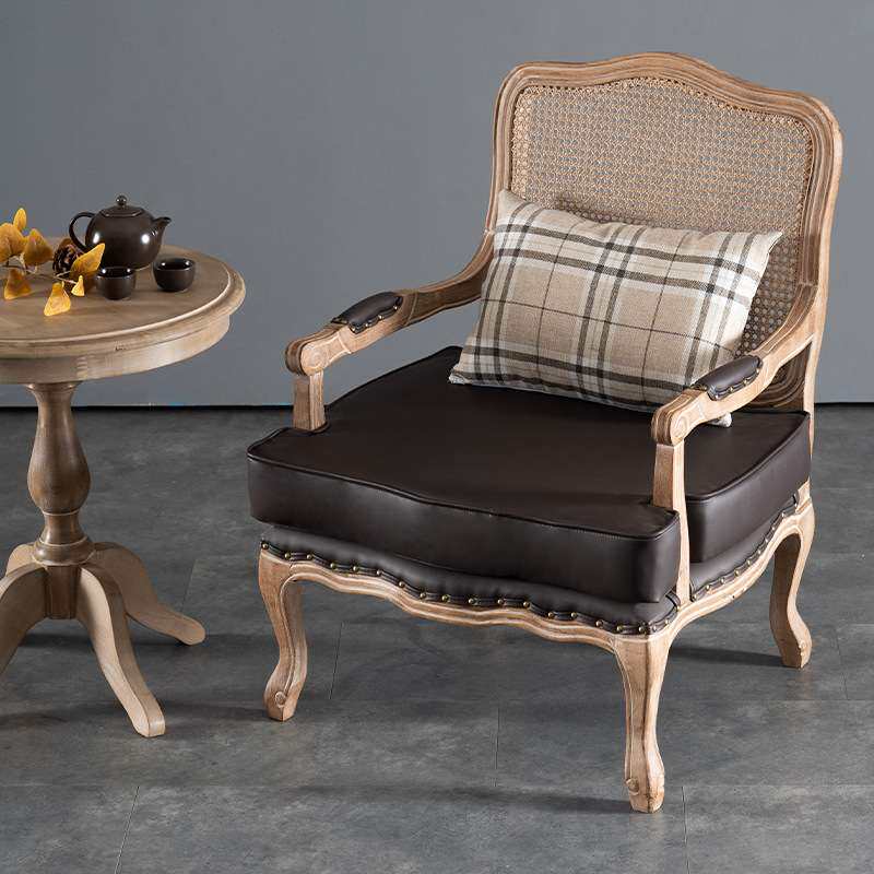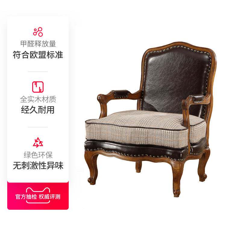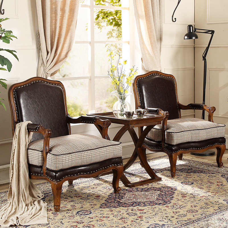 法式复古感客厅卧室单人沙发椅实木老虎椅美式扶手椅阳台休闲单椅