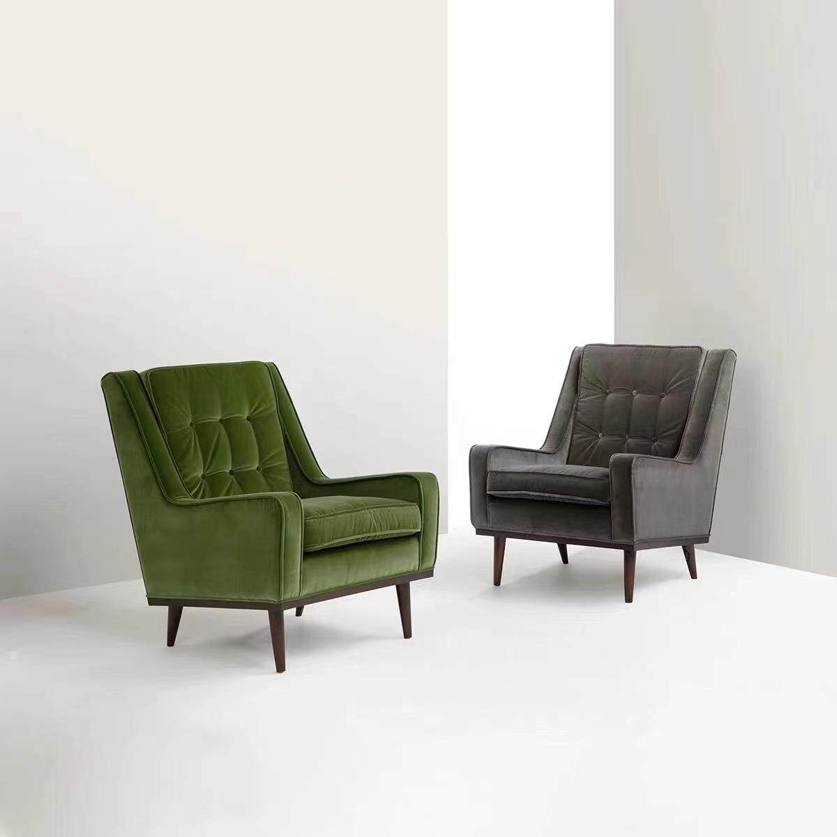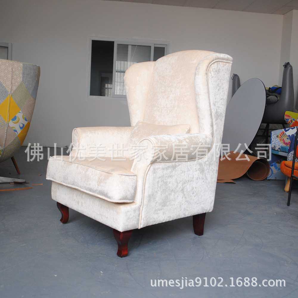 新古典绒布单人沙发椅高背沙发老虎椅美式欧式休闲高背椅复古做旧