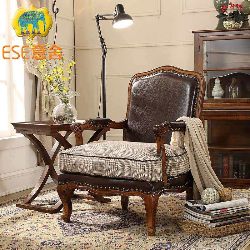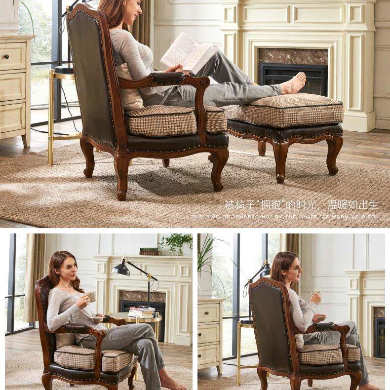 老虎椅美式单实人沙发单椅卧室客厅阳890台布艺木人复古休闲椅子
