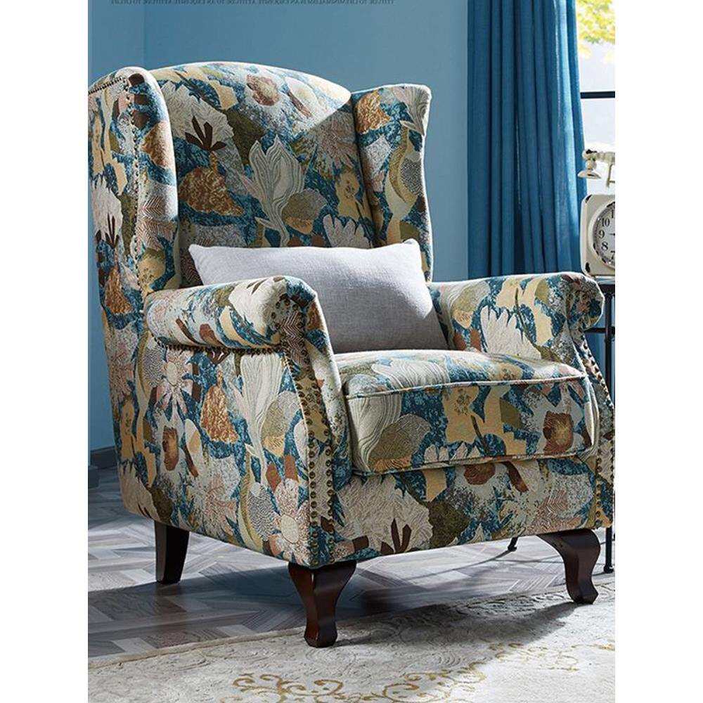 高背椅单人沙发老虎椅美式乡村复古休闲椅客厅卧室现代简约小户型