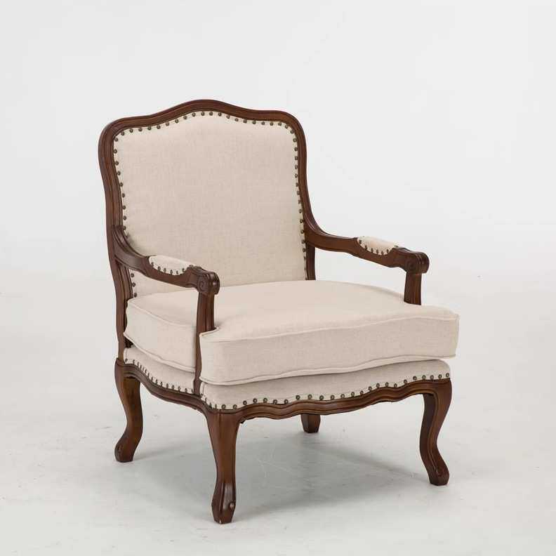 法古式复实木布艺沙336发椅房书台客厅单人老虎椅美式轻奢休闲椅