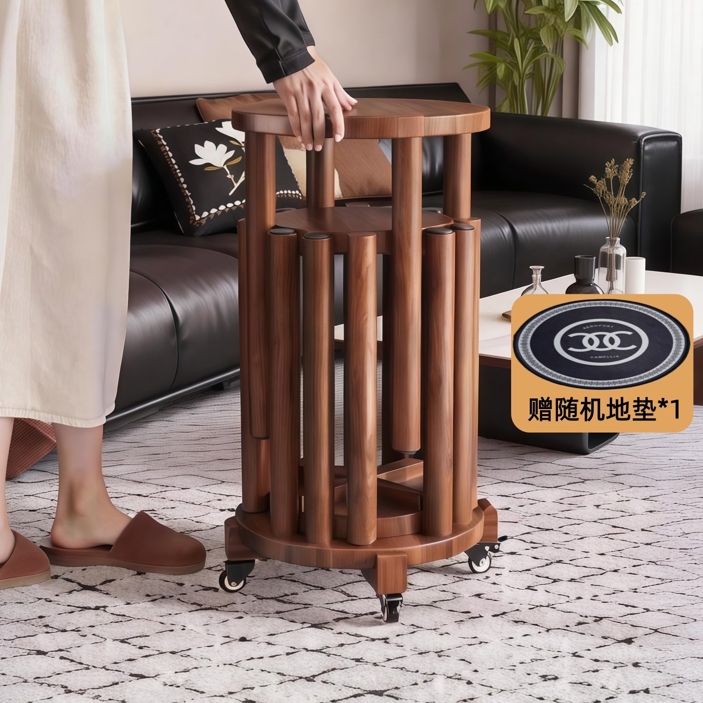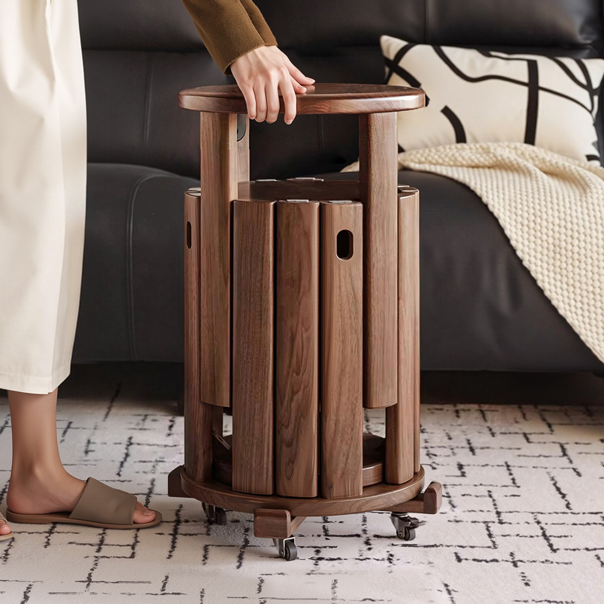 实木圆凳家用可叠放客厅茶几备用餐桌凳收纳叠叠乐组合带滑轮简约