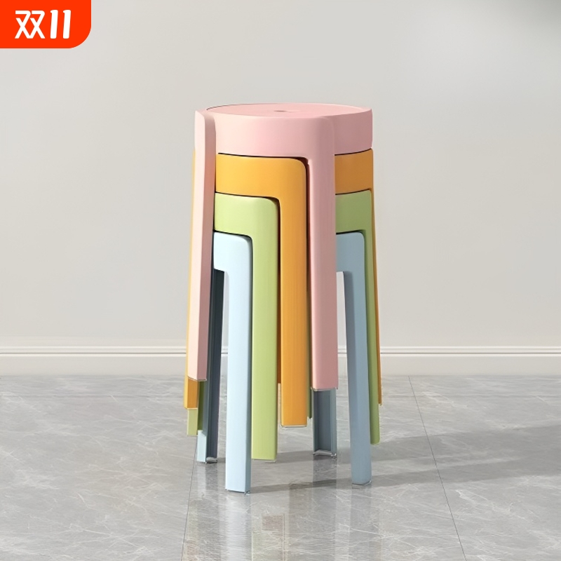 北欧时尚圆凳家用加厚可叠放客厅餐桌简约现代易收纳塑料凳子轻奢