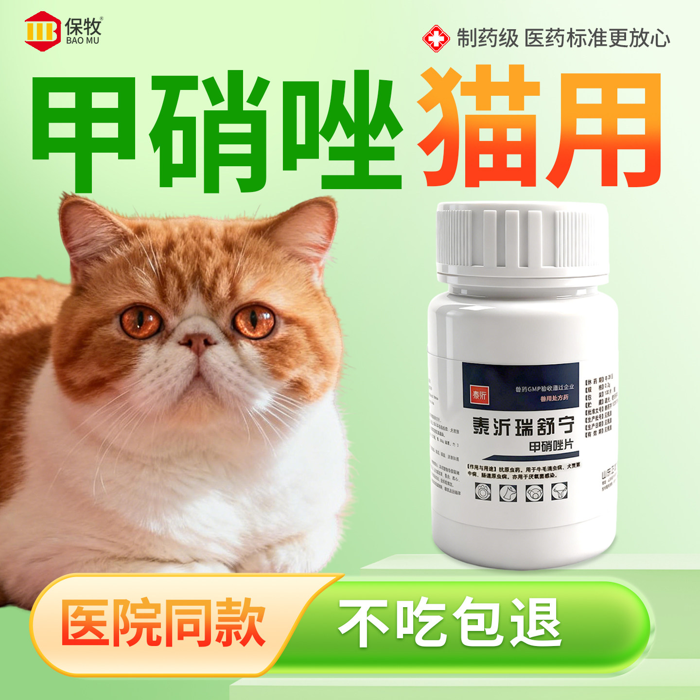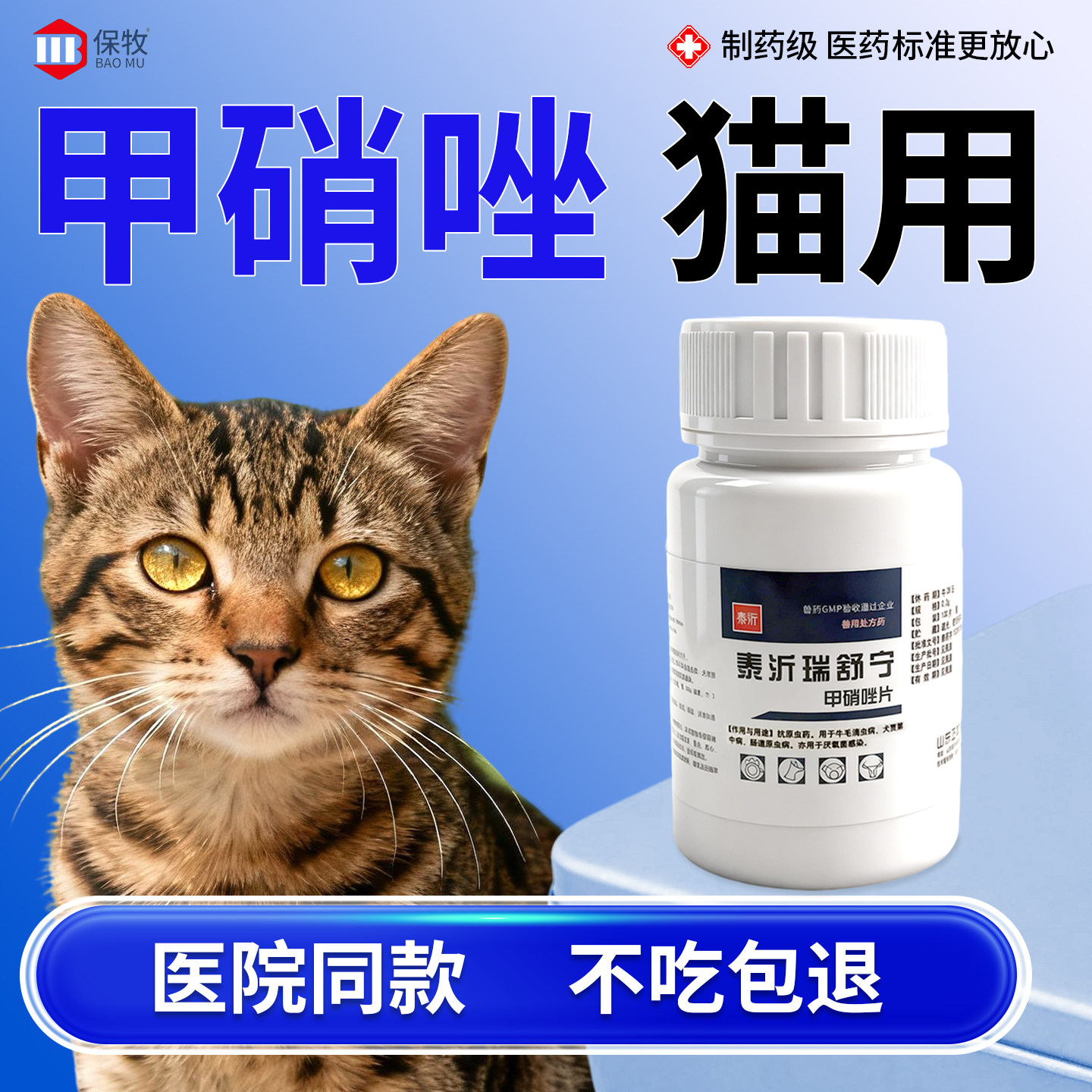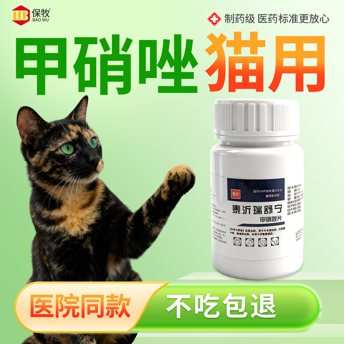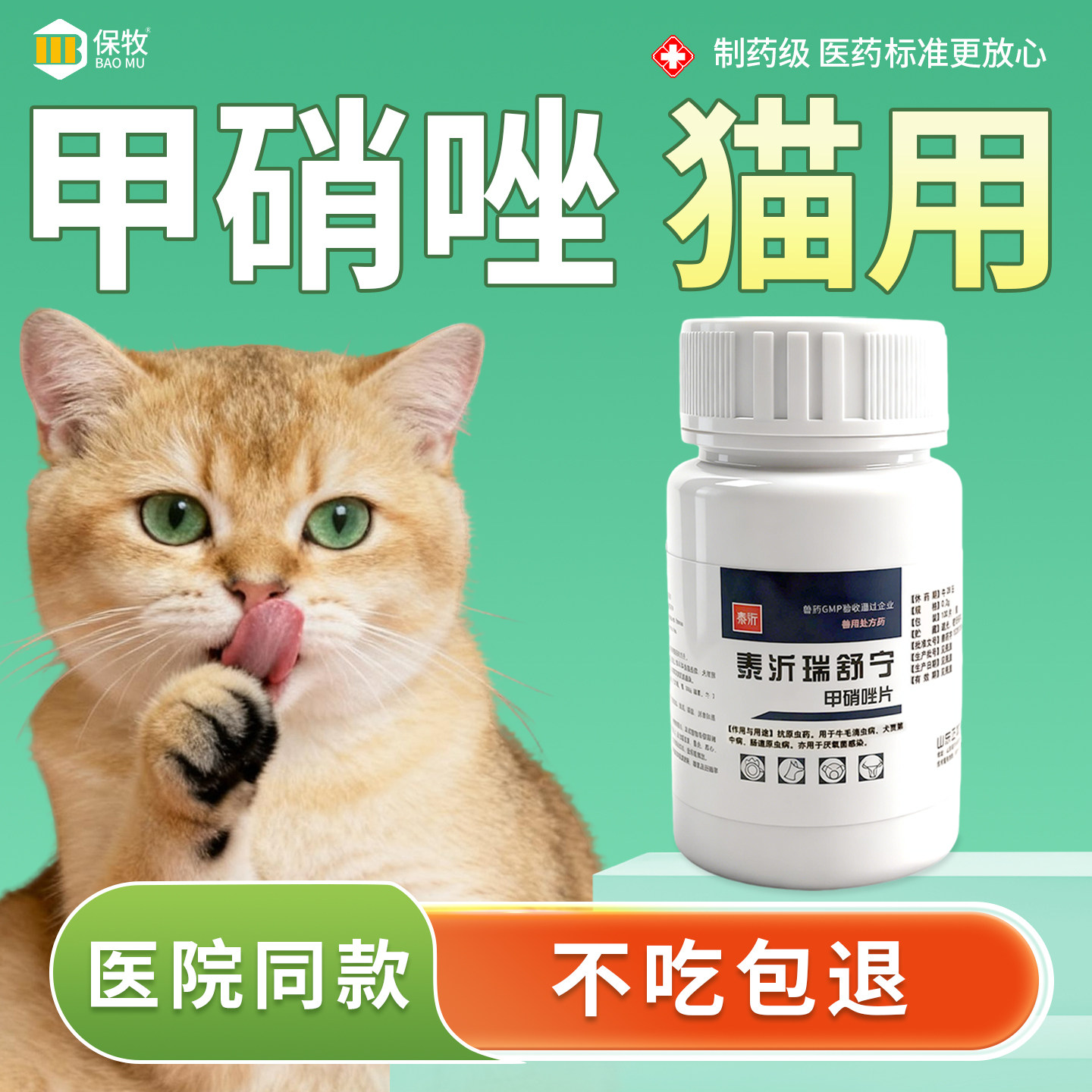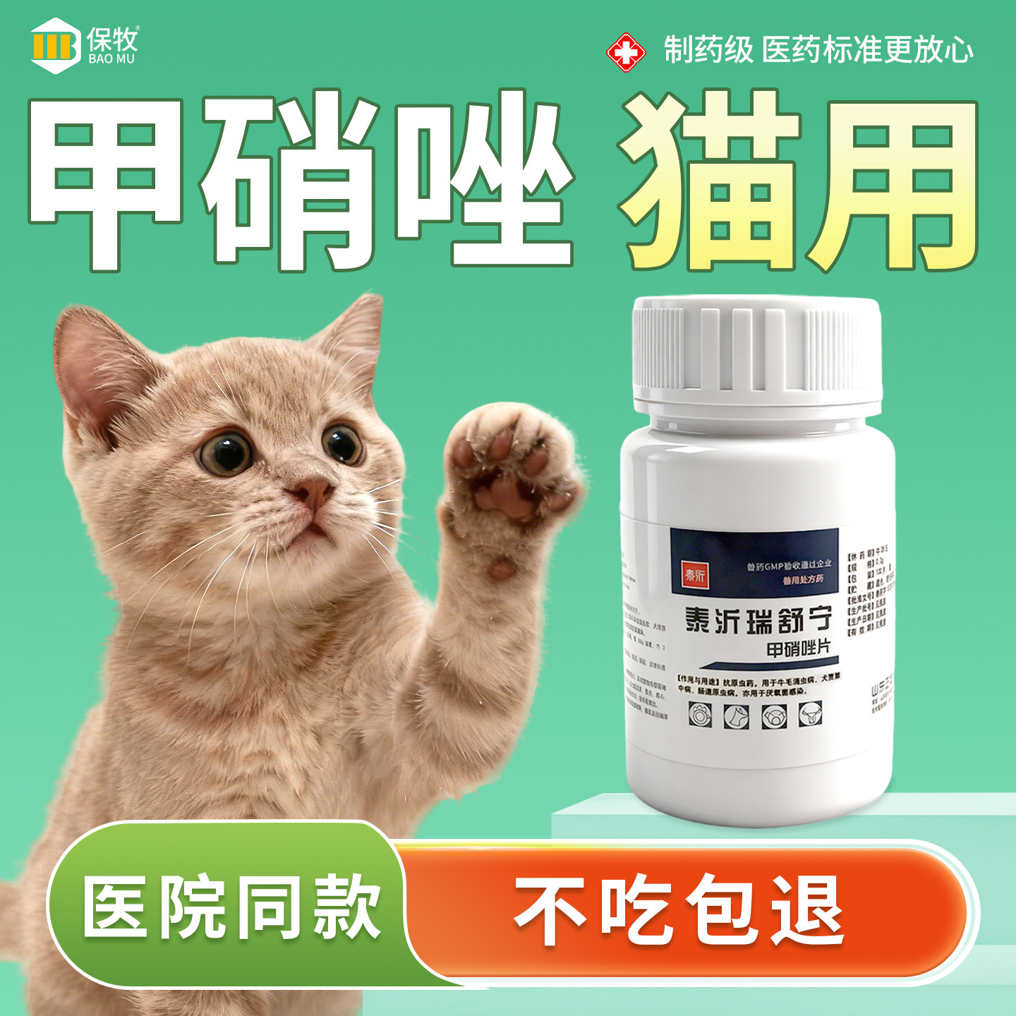 甲硝唑猫用兔子狗鹦鹉鱼药乌龟维生素b6片消炎片脚趾炎体内驱虫药