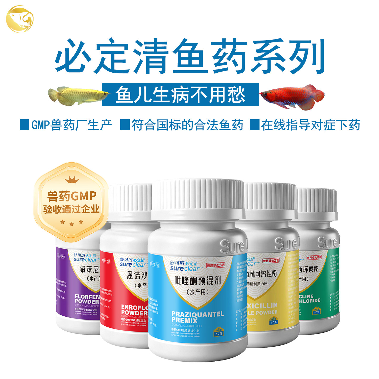 新必定清鱼药观赏鱼龙鱼鹦鹉鱼寄生虫驱虫药内外双杀烂身烂尾黄粉