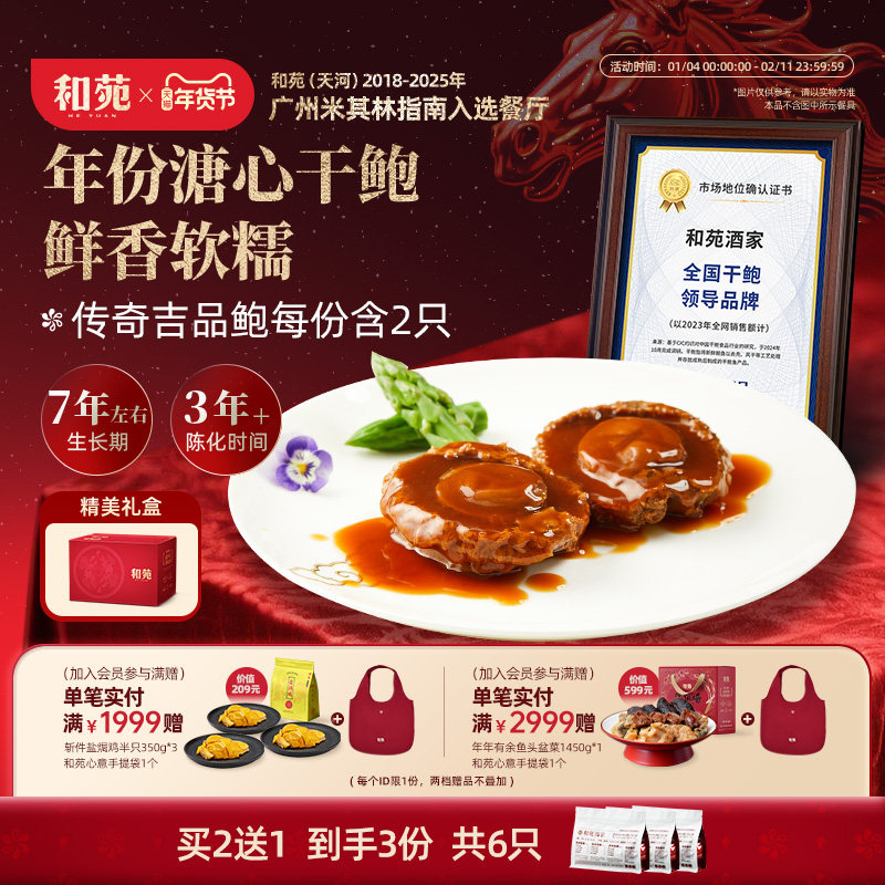 和苑酒家传奇吉品鲍 25头溏心鲍鱼非罐头干鲍鱼汁捞饭2只加热即食