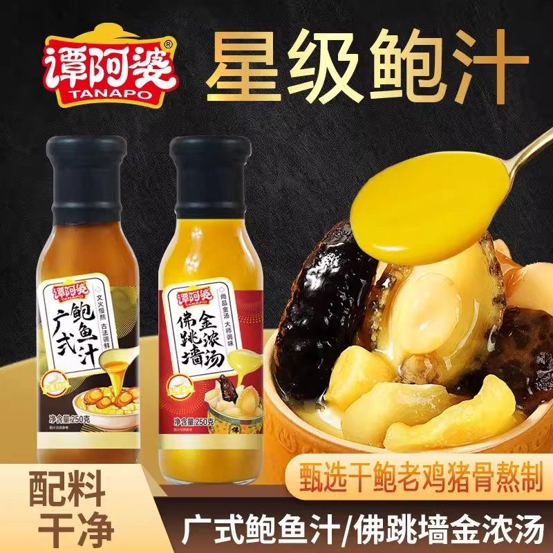 谭阿婆广式鲍鱼汁佛跳墙金浓汤250g瓶海参鲍鱼捞饭焖鸡拌面调味酱