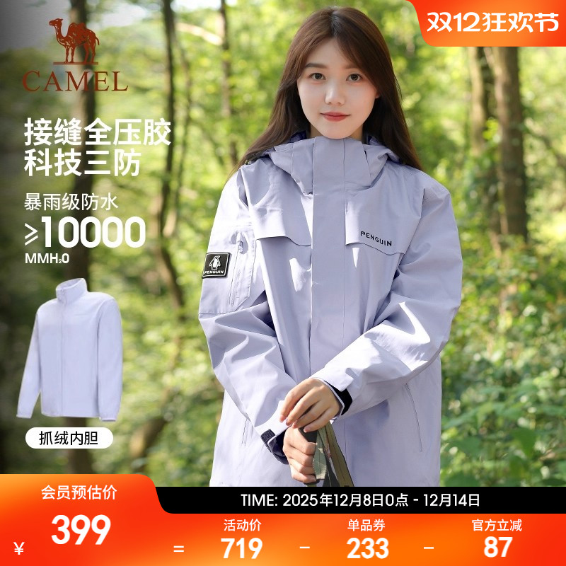 骆驼户外冲锋衣女款25年三合一鹅绒内胆三防保暖羽绒登山服外套男