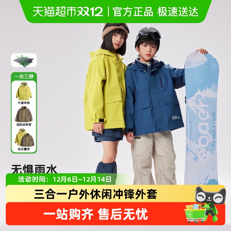 EBAER儿童冲锋衣三合一2024新款秋季男女童户外防水冲锋外套秋装